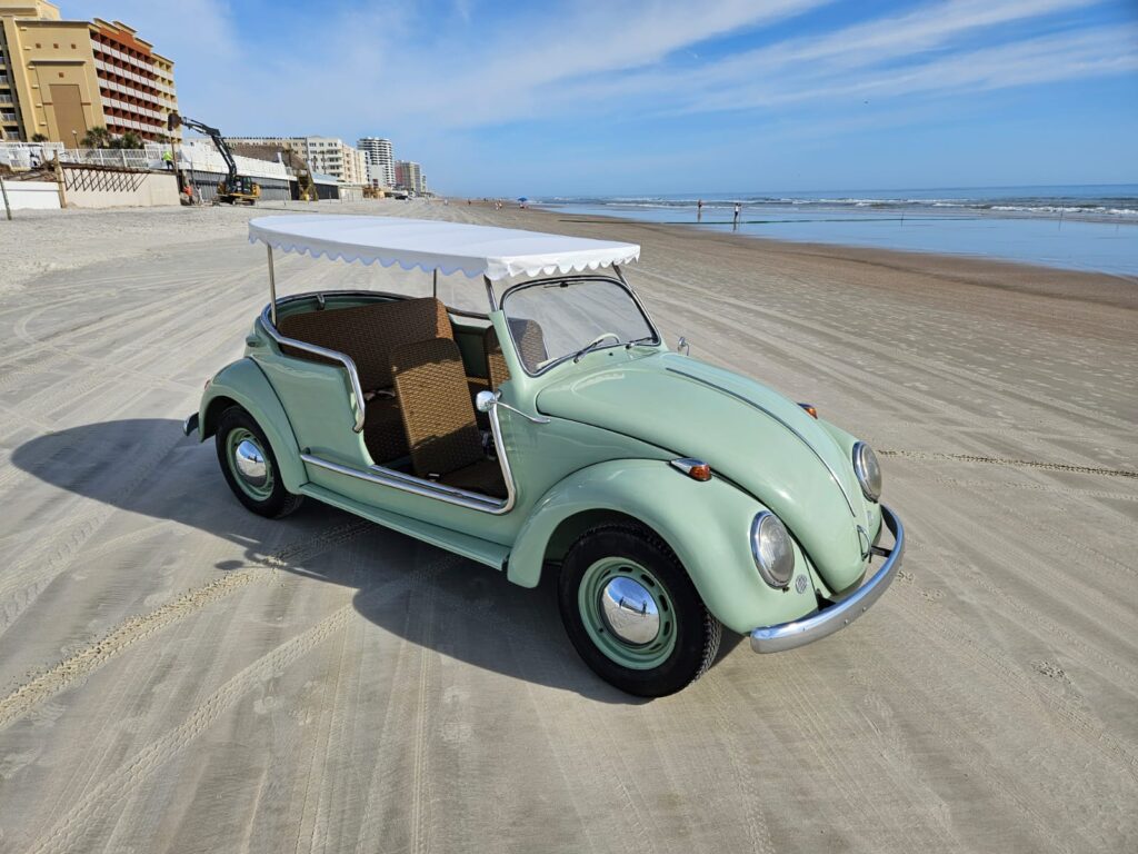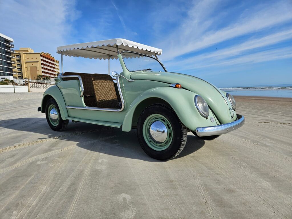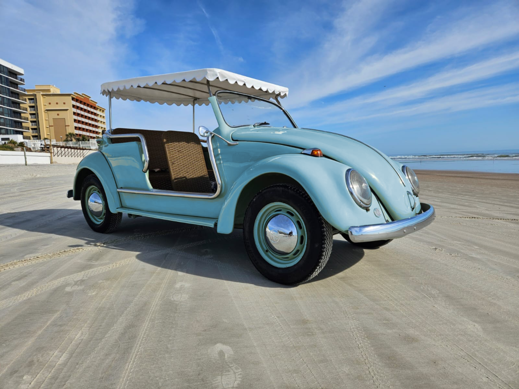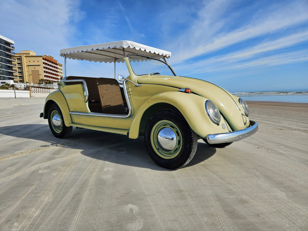Body-color 15” steel wheels feature chrome VW-stamped hubcaps and are fitted with brand new tires. Stopping power is provided by front and rear drum brakes.