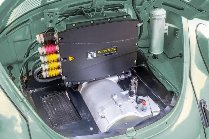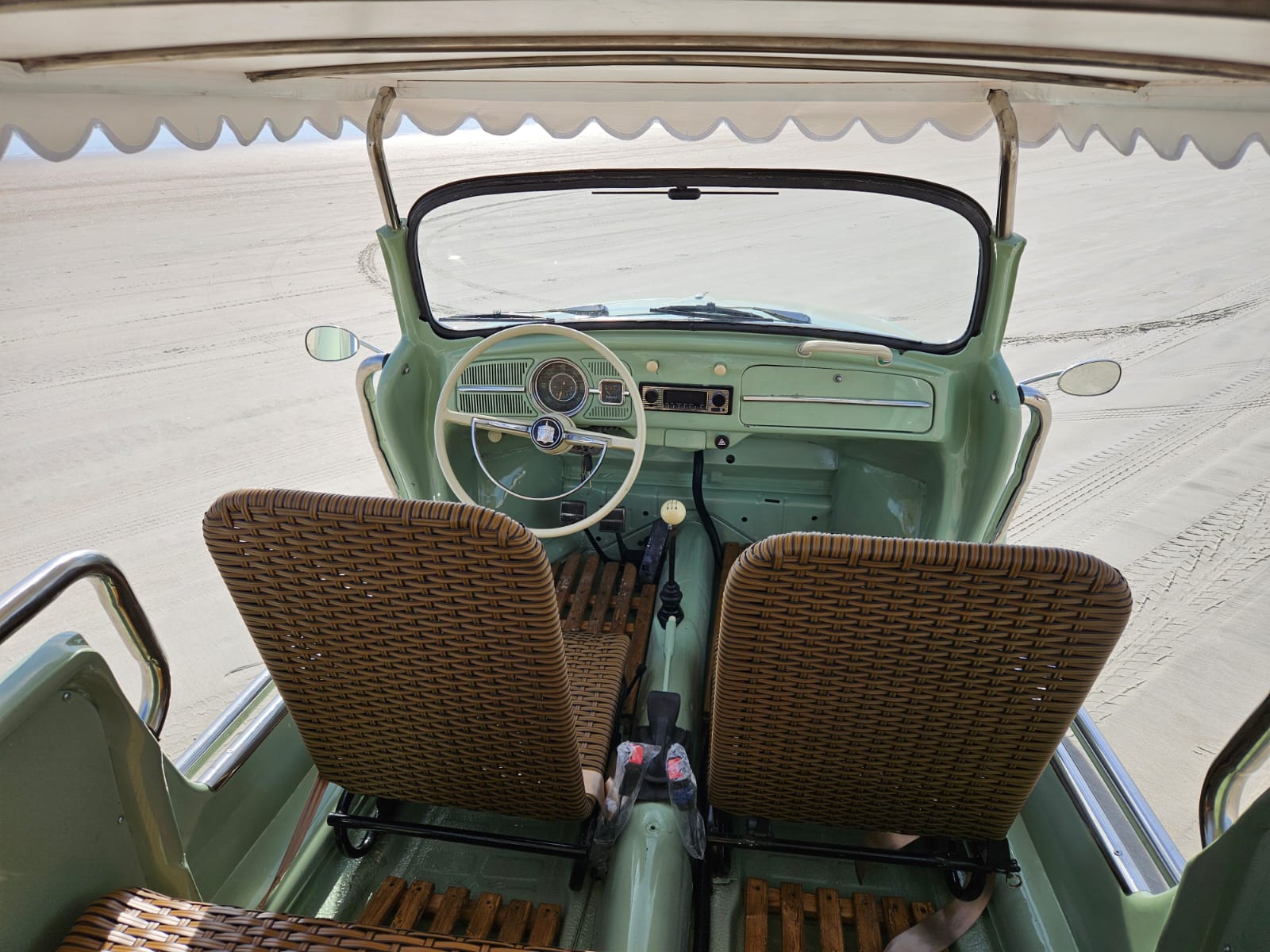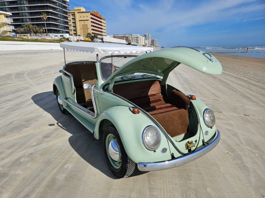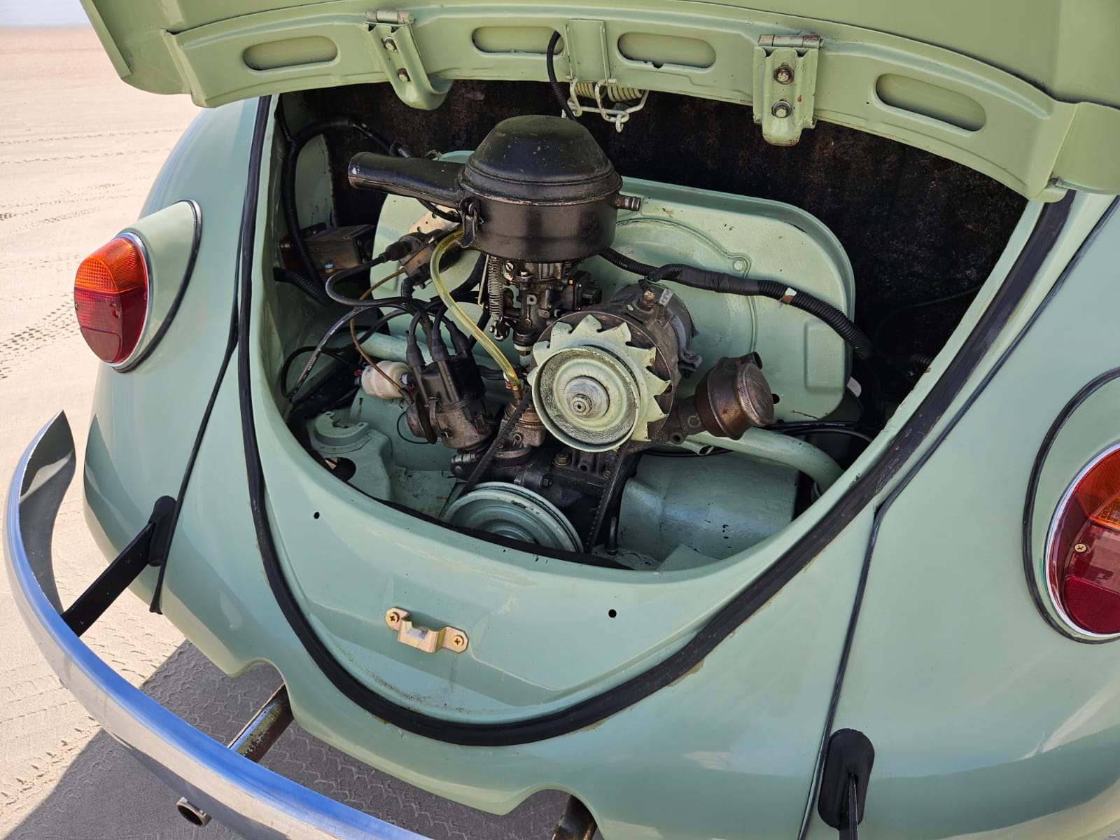 Body-color 15” steel wheels feature chrome VW-stamped hubcaps and are fitted with brand new tires. Stopping power is provided by front and rear drum brakes.